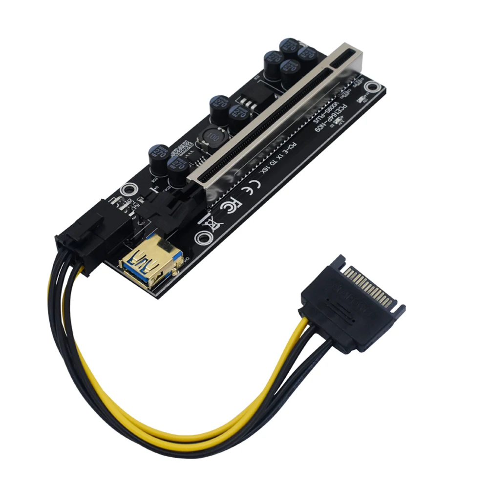 Plus PCIE Райзер-карта PCI Ver 009S Экспресс 1X 4X 8X 16X удлинитель позолоченный PCIe адаптер Sata 15Pin на 6 Pin BTC Майнер