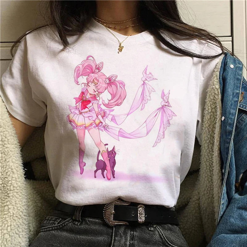 Футболка женская футболка с забавным мультипликационным принтом Harajuku Femela Топы Ullzang аниме футболка 90s в Корейском стиле Стиль футболки в стиле панк одежда