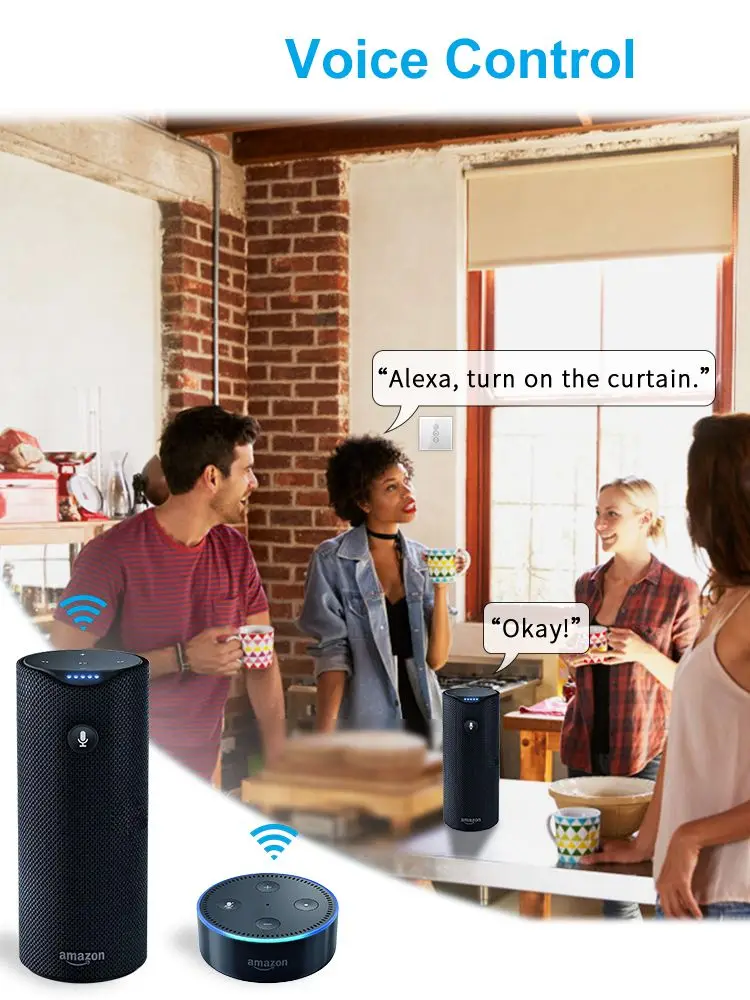 Голосовое управление с Alexa, Google Home для включения и выключения штор.
