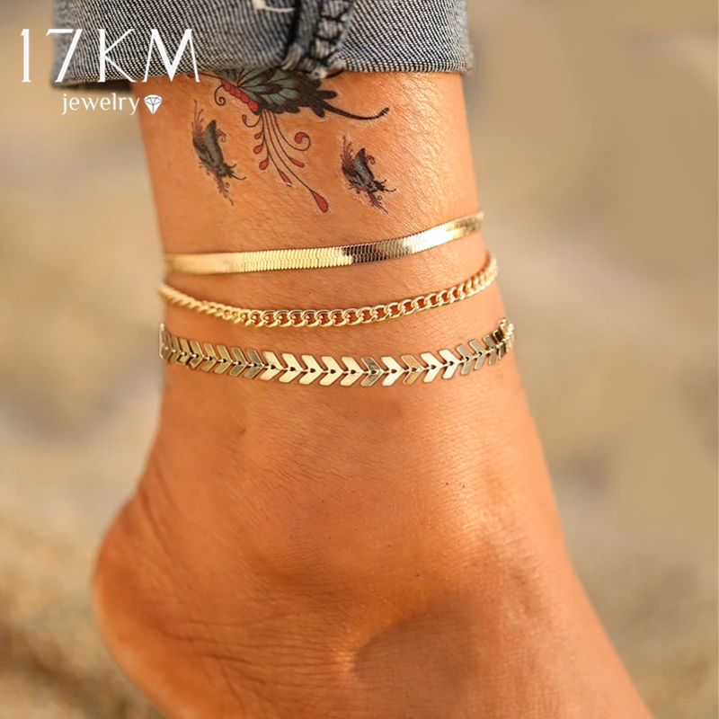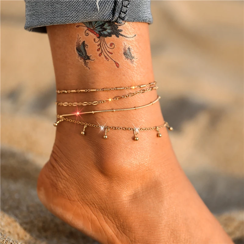 Браслет на ногу Женский, многослойный, золотистый, с бусинами