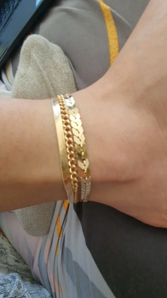 Красивые браслеты, золотистого цвета, хорошо сидят на ноге