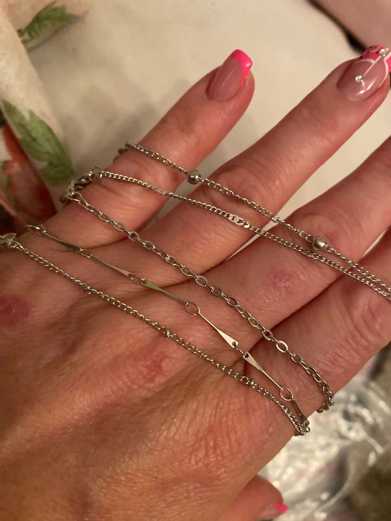 На одном браслетике отлетела цепочка, на которую он крепится. Но думаю при большом желании можно починить эту мелкую деталь