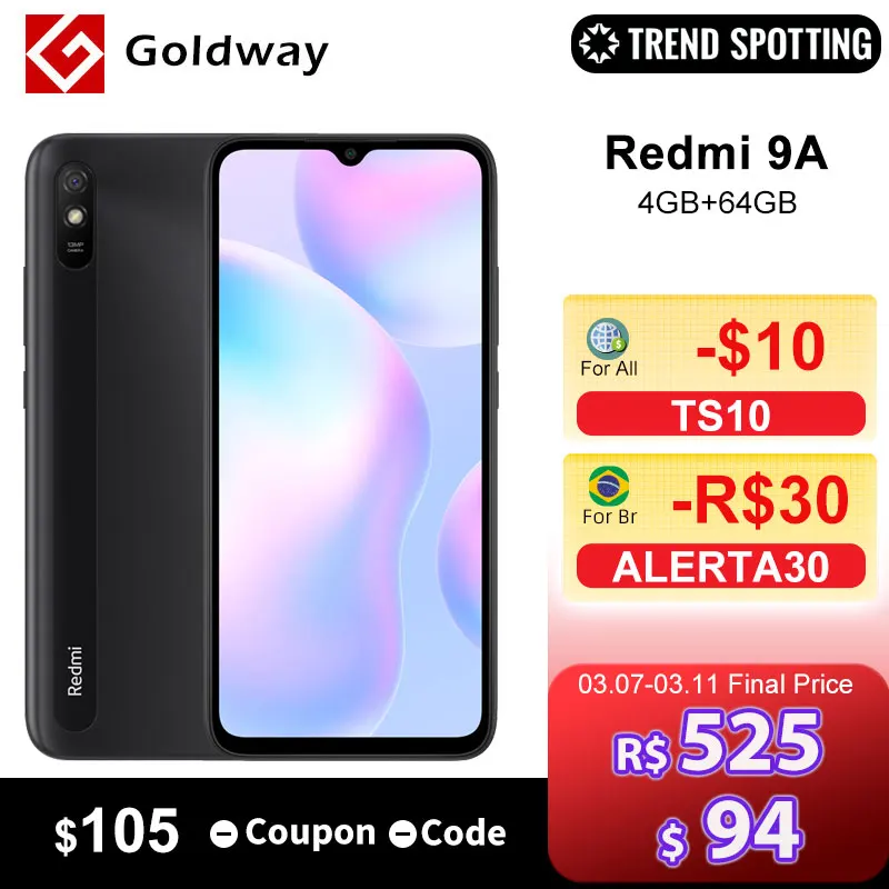 Смартфон Xiaomi Redmi 9A 9 A, 4 Гб ОЗУ, 64 Гб ПЗУ, 5000 мАч, большой экран 6,53 дюйма, Восьмиядерный процессор MTK Helio G25, камера 13 МП с ии, китайская версия