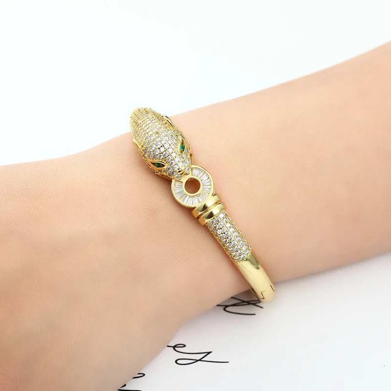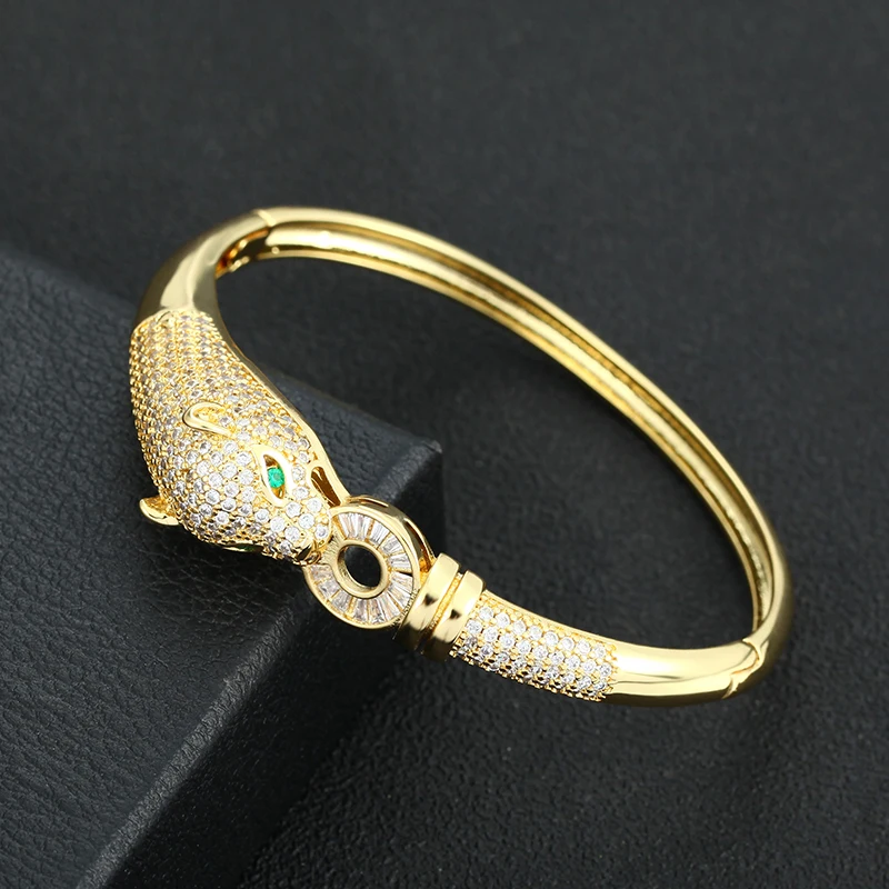 Золотая голова леопарда, украшения в стиле хип-хоп, Открытый браслет для женщин, женский ювелирный браслет из меди и циркония