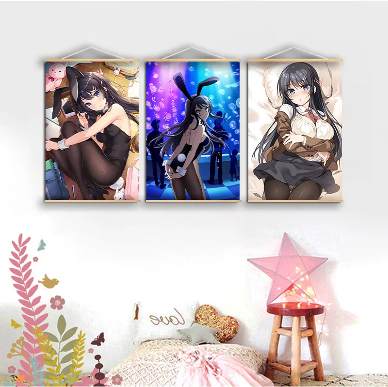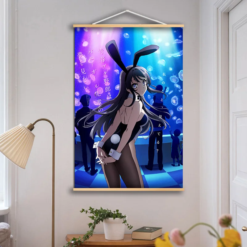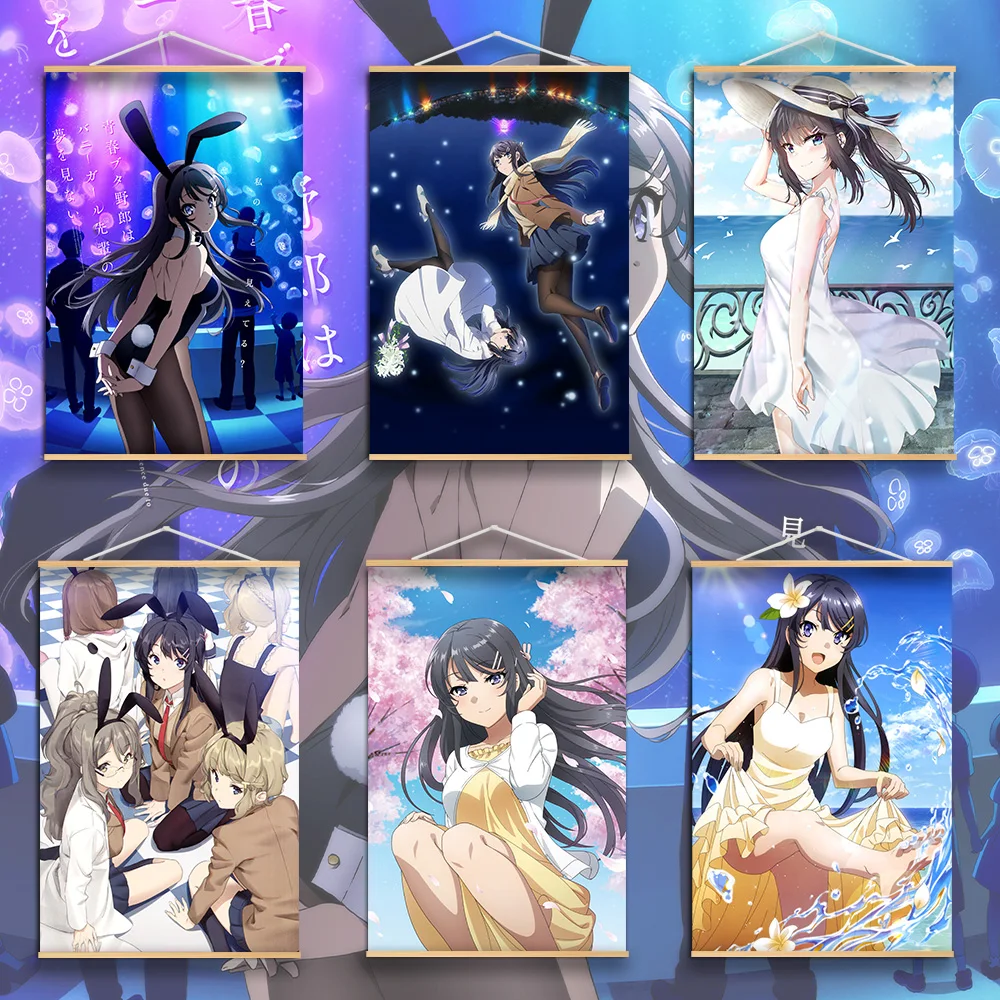 Аниме Манга, молодежная голова свиньи, настенный постер для подростков, Картина на холсте, подвесной свиток из массива дерева для Sakurajima Mai