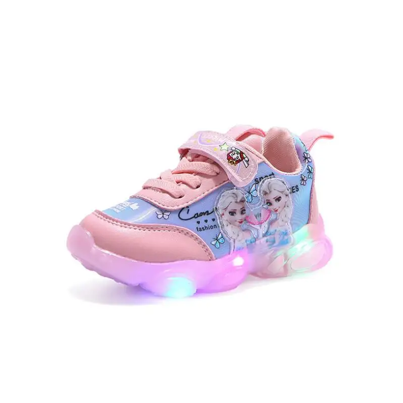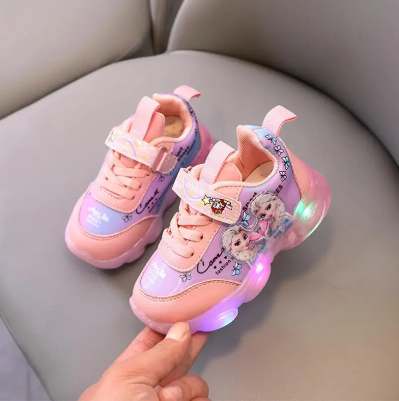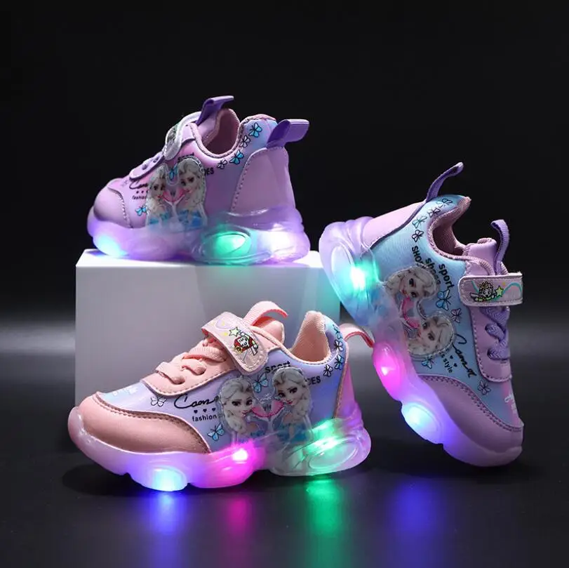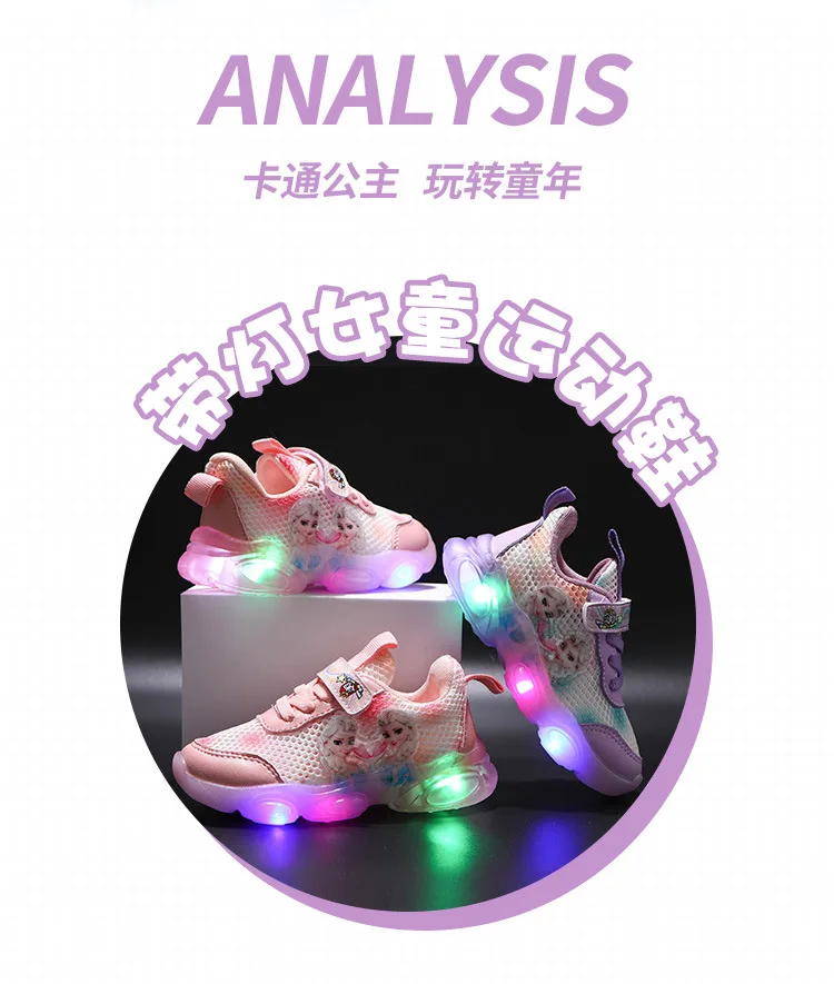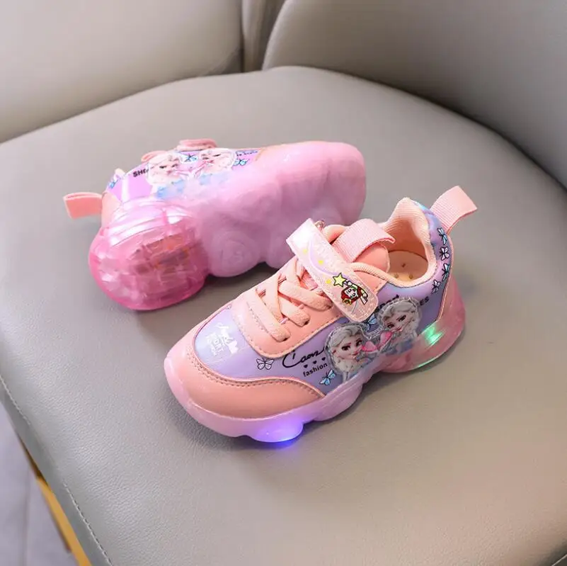 Сезон весна-осень; С героями мультфильма Холодное сердце светильник обувь для девочек Детские повседневные платья с Эльзой и кроссовки из дышащего мягкого материала с защитой от скольжения; Спортивная обувь для бега