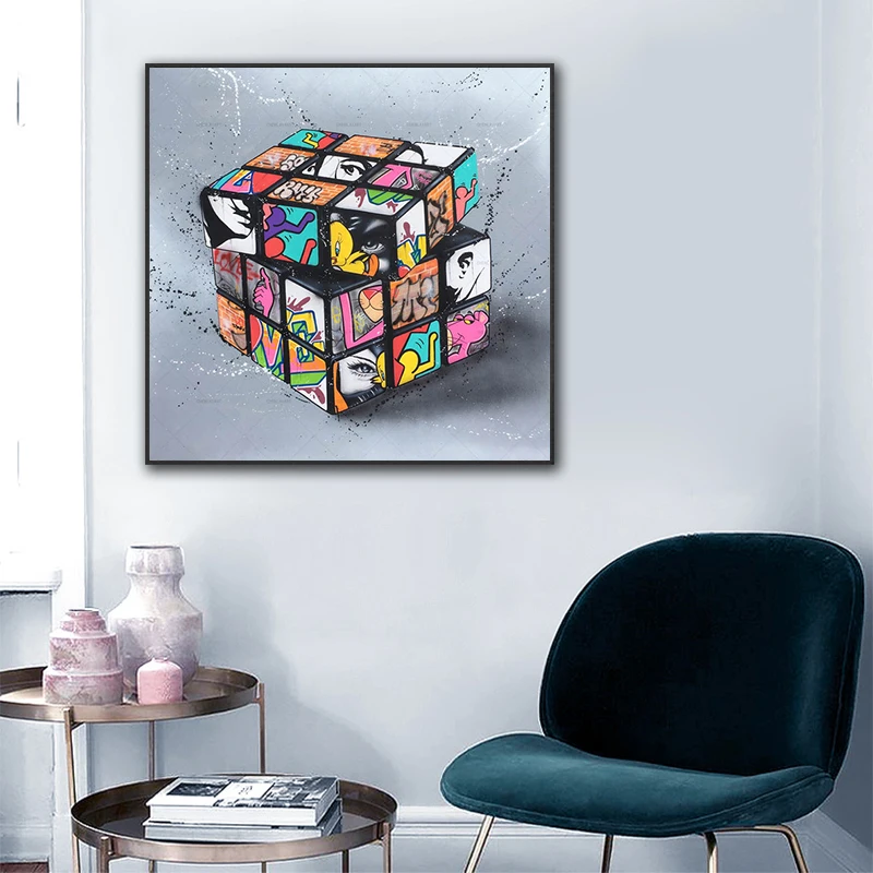 Граффити искусство кубика Рубика картины на холсте плакаты и принты Куадрос настенное Искусство декоративные картины для детской комнаты декор