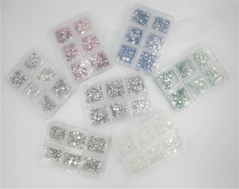 Стразы смешанных размеров из стекла без горячей фиксации, набор стразы с плоской задней стороной, стразы с 3D кристаллами для дизайна ногтей, украшения для одеждыногтей, 1200 шт.
