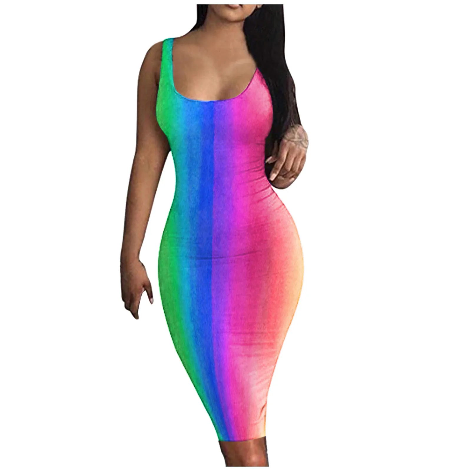 Женские Тай-дай платье на бретелях летний сексуальный без рукавов; Яркие платья с тай-дай печати основной миди платья для вечеринок женские вечерние мини-платье