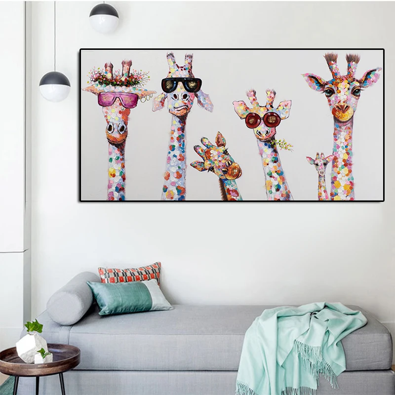 Граффити Искусство Животные Холст Картина любопытные Жирафы семейны...