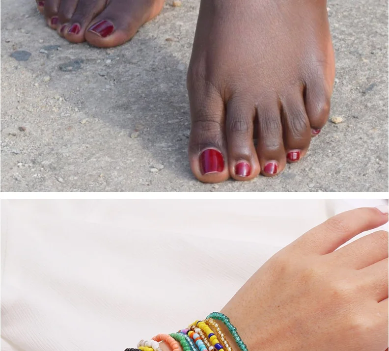 Богемные разноцветные браслеты для ног для женщин, эластичные украш...