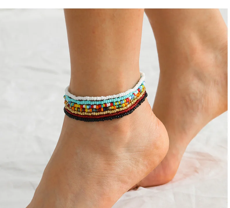 Браслеты на ногу женские с бусинами, креативные анклеты в стиле бохо, модные пляжные ювелирные украшения ручной работы для ног