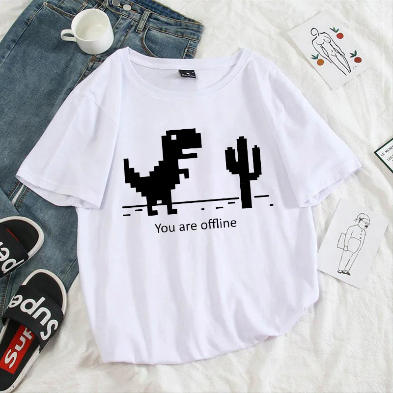 Белая футболка с принтом динозавра, женская одежда, летняя футболка...