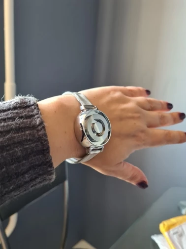 прикольные часы, тяжёлые. циферблат высокий. внутренний круг это минуты, внешний это часы. запаковано очень круто. шарики если тронуть, они болтаються, но потом стают на место. оригинально. доставка 2 недели. браслет большой, на мужскую руку скорее.