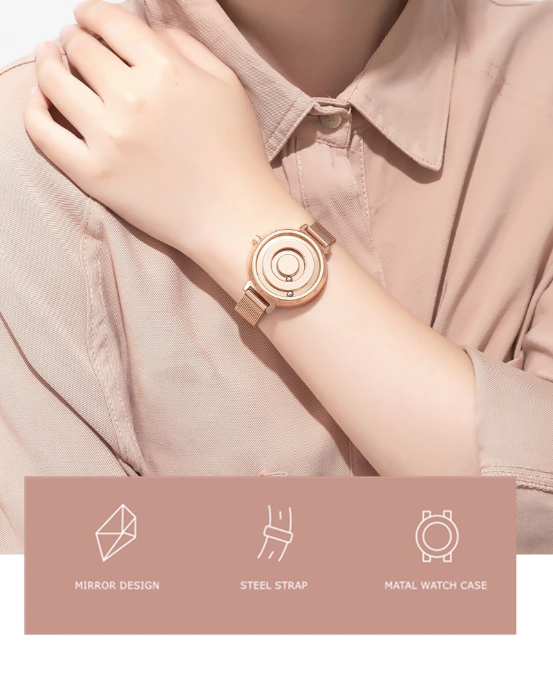 Часы наручные женские кварцевые, оригинальные магнитные модные, с браслетом из нержавеющей стали, цвет черныйрозовыйзолотой
