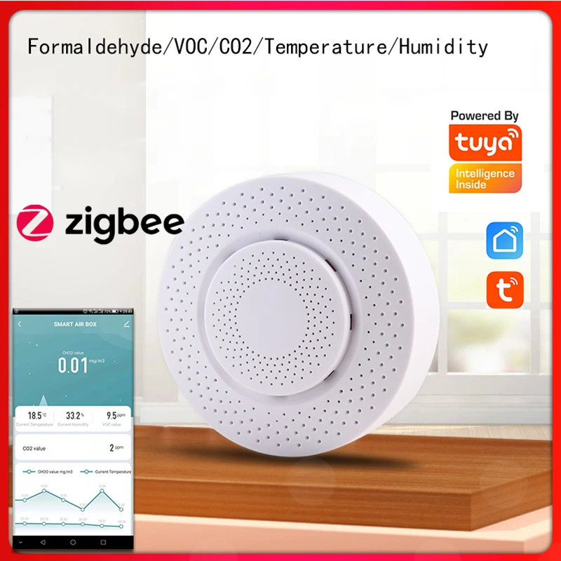Датчик температуры и влажности Tuya ZigBee для умного дома, цифровой датчик формальдегида, VOC CO2, работает с Smartlife Alexa Google Assistant