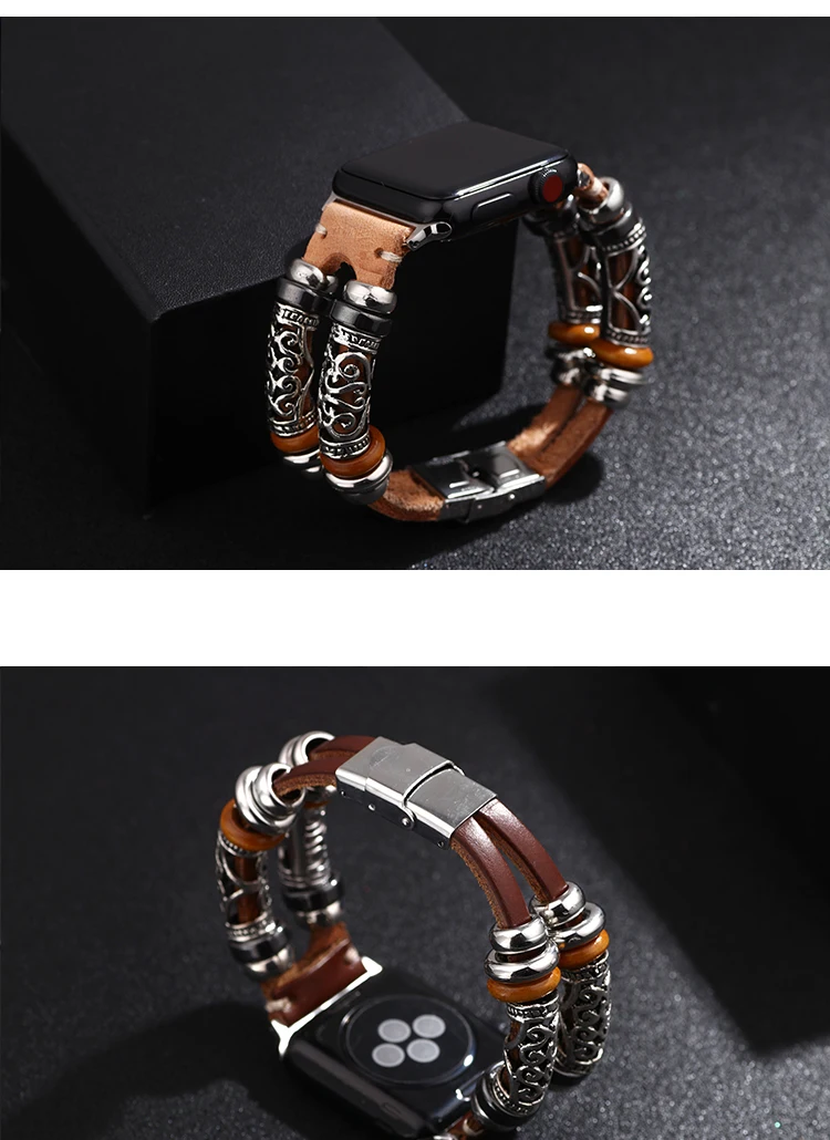 Винтажный кожаный браслет с бусинами Kirykle для Apple Watch серии ...