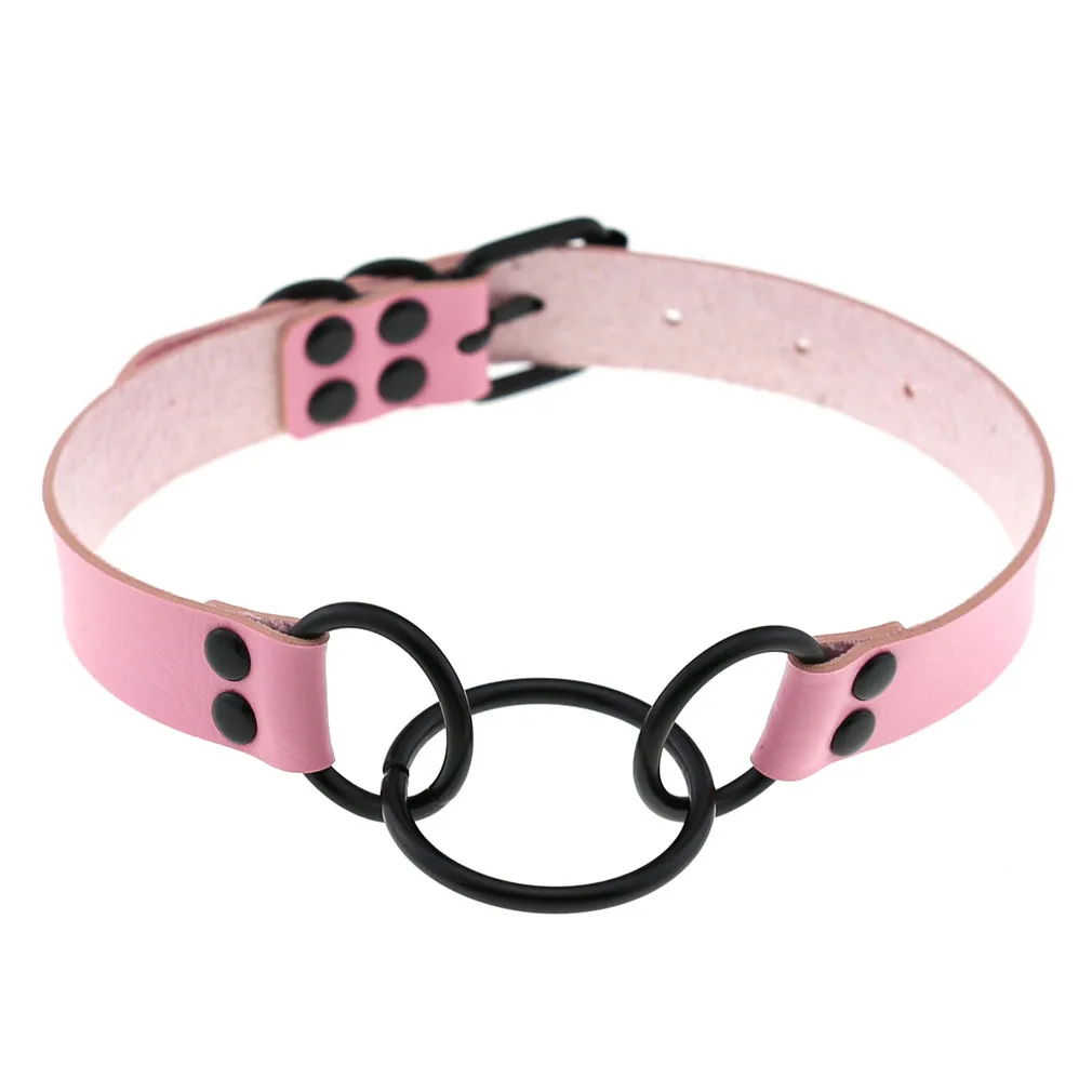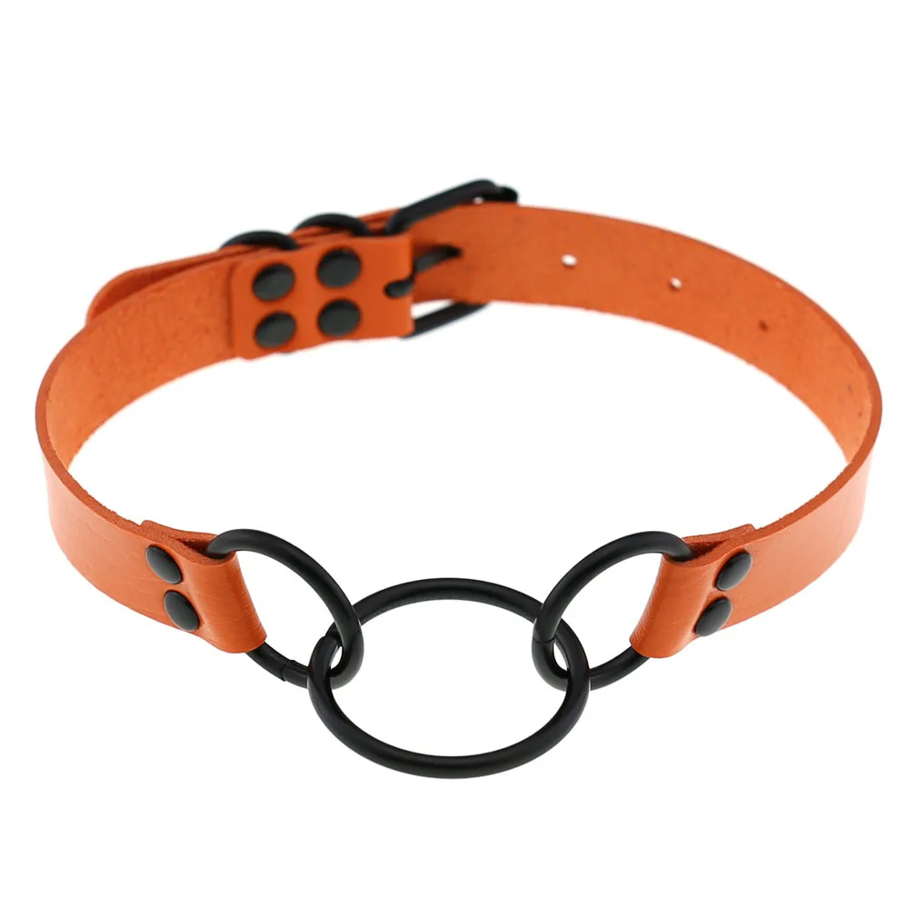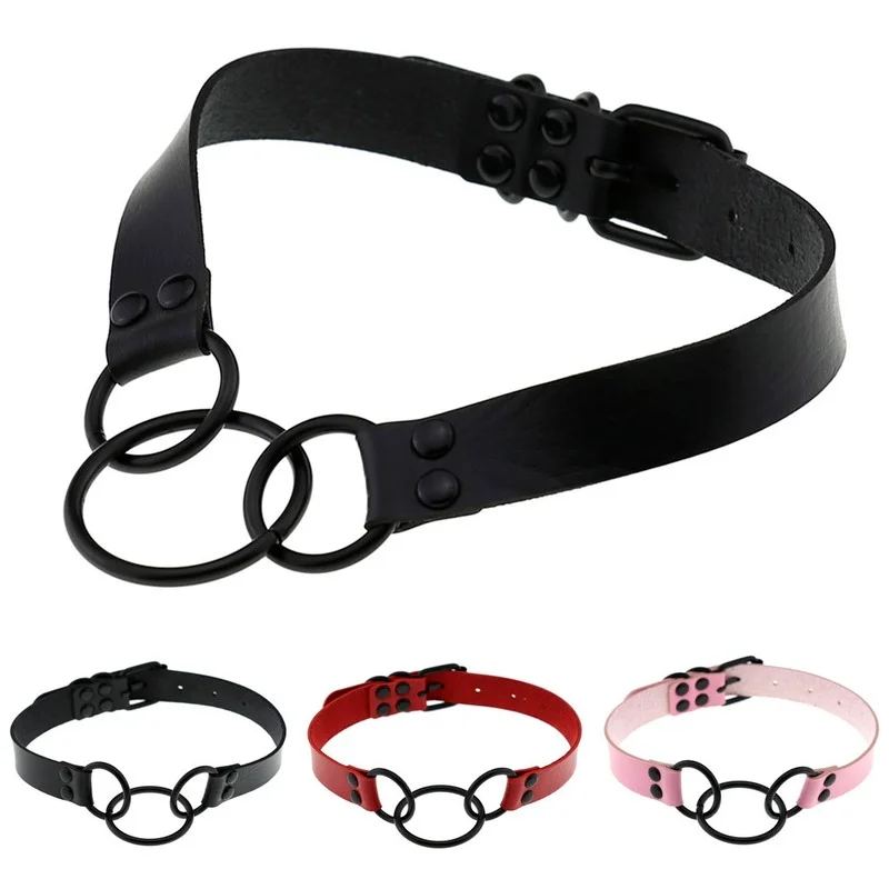Ожерелье-чокер женское кожаное с 3 кругами, в готическом стиле