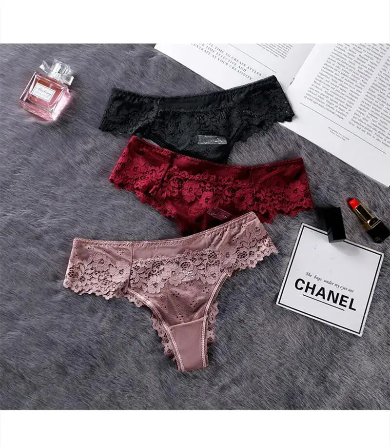 Женские кружевные трусы с вышивкой, соблазнительные стринги с низкой талией, прозрачное ажурное женское нижнее белье