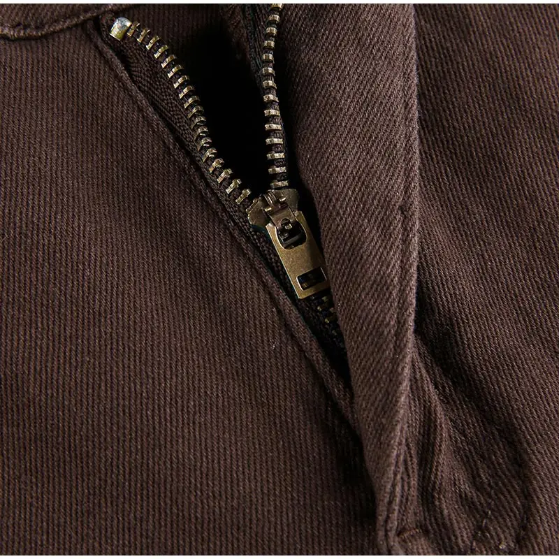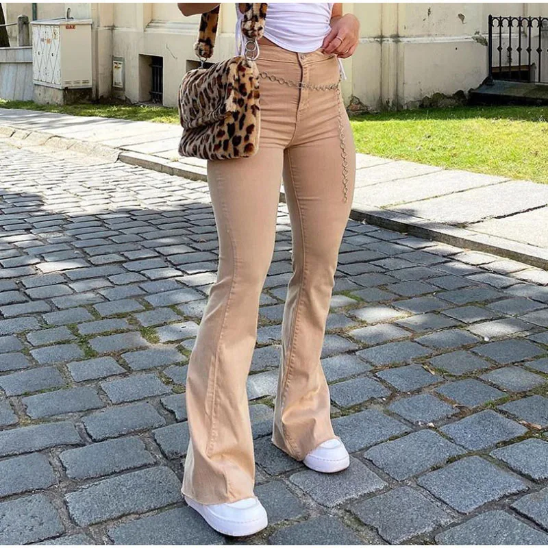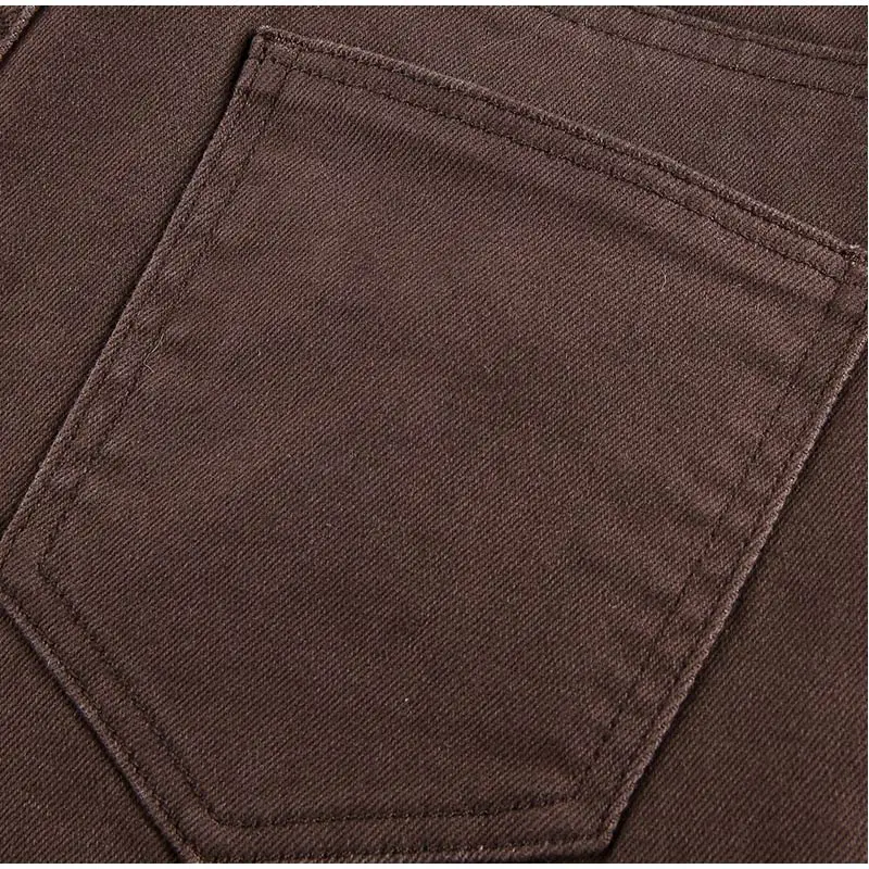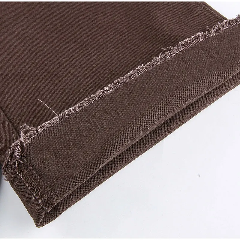 Женские джинсы в стиле Харадзюку, коричневые эластичные расклешенны...