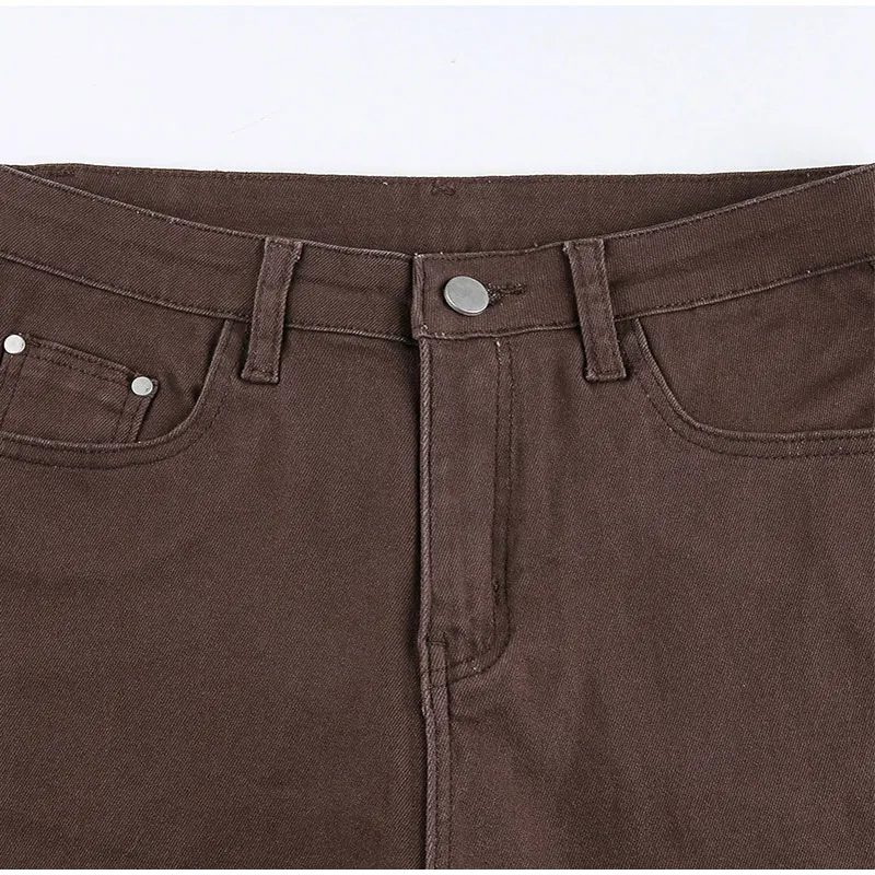 Женские джинсовые брюки Y2K, коричневые, винтажные, уличные, с высо...