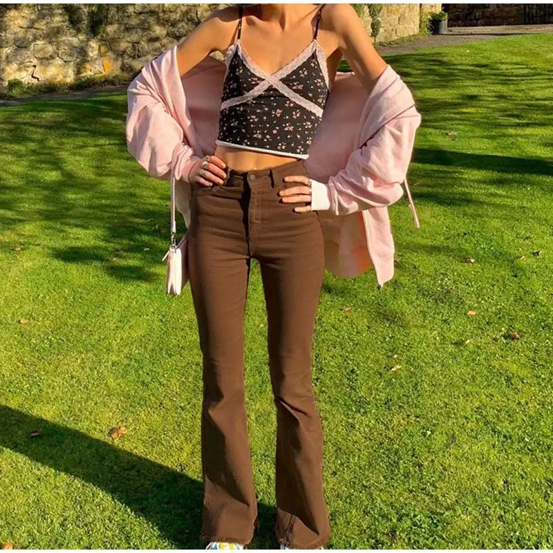 Женские расклешенные джинсы, винтажные коричневые брюки-клеш Y2k, о...