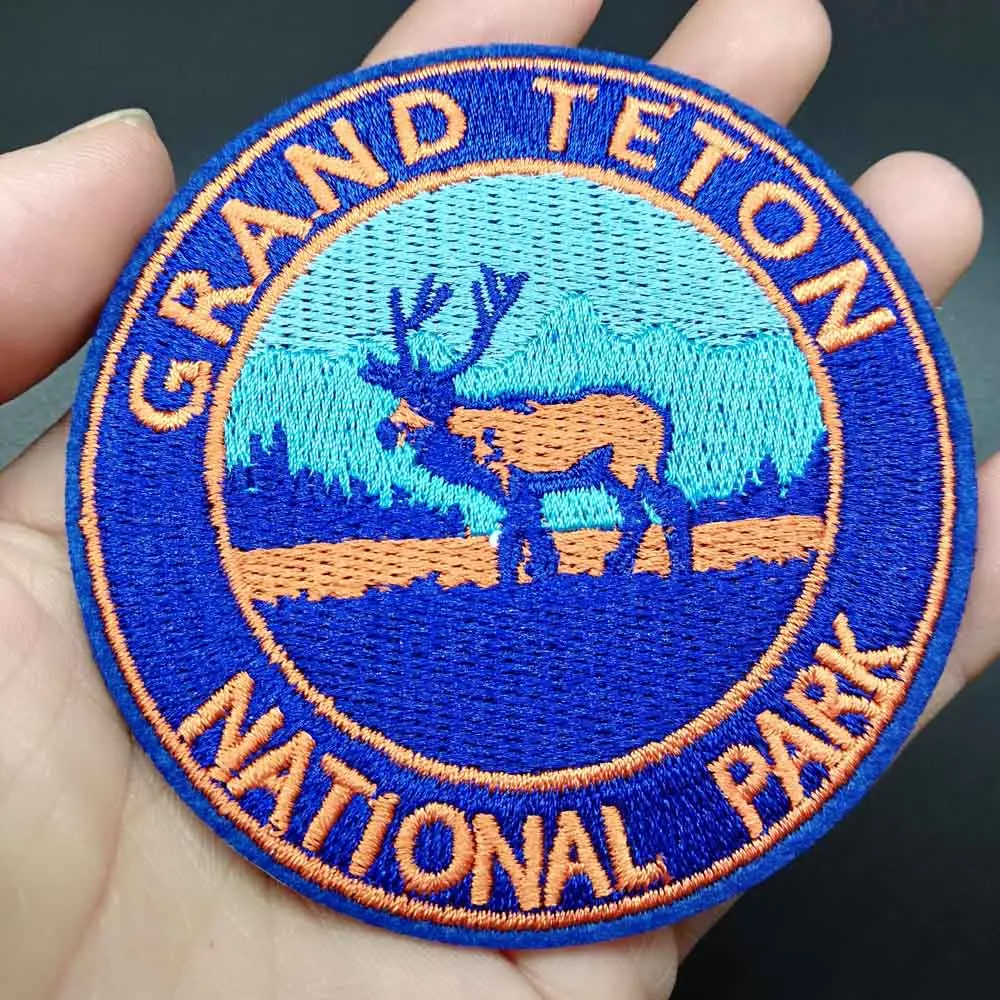 Полная вышивка, зеленый олень, медведь, национальный парк адиая, вышивка утюгом, нашивки для одежды, наклейки, одежда, оптовая продажа
