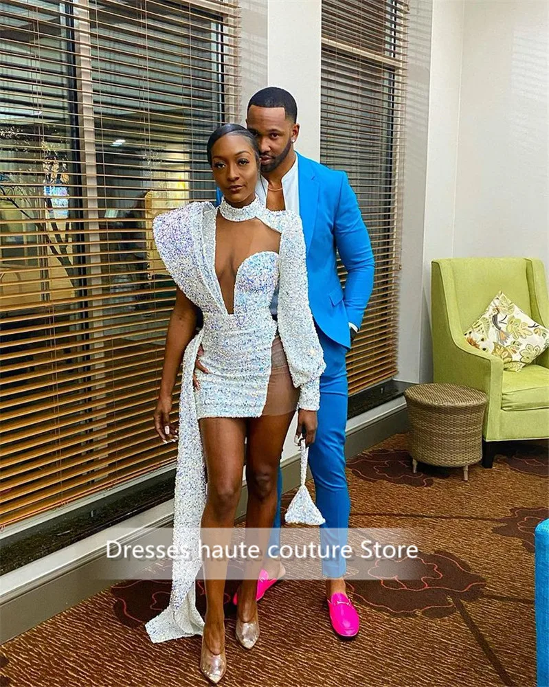 Платье на одно плечо с блестками платье для выпускного вечера пикантные африканская темнокожая девушка с коротким Вечеринка платья 2021
