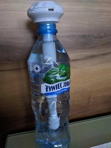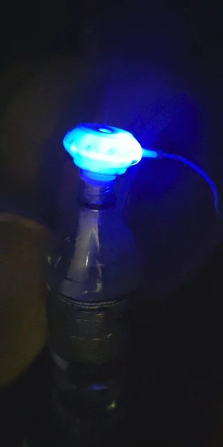 Соответствует описанию. Пришел просто в пакете, помятый но рабочий. Постоял 5 мин в воде но все равно не завелся, перевернул, вода попала и начал работать нормально. Светится синим при работе.Кнопка без фиксации, при потере питания надо опять включать. Шло средне.