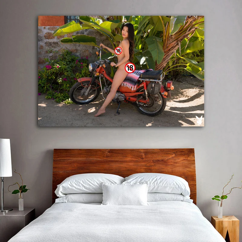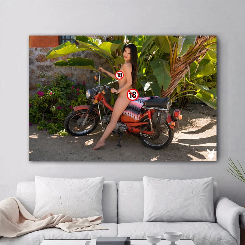 Горячая девушка сексуальная женщина ездить на мотоцикле Настенный декор плакаты ткани печать искусство холст картины декор гостиной