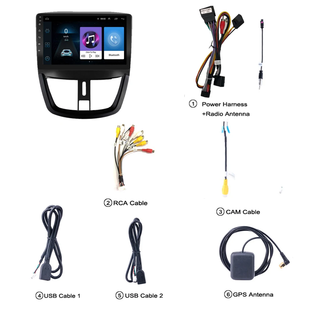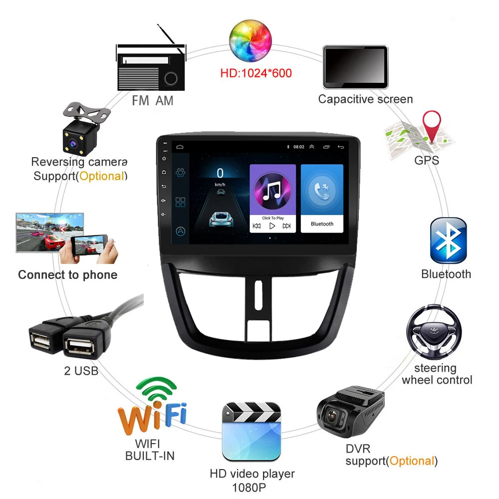 Автомобильный мультимедийный плеер 2 DIN, 9 дюймов, Android 8,1, Wi-Fi, GPS-навигация, стерео, автоматическое радио для 2007-2013 Peugeot 207 207CC