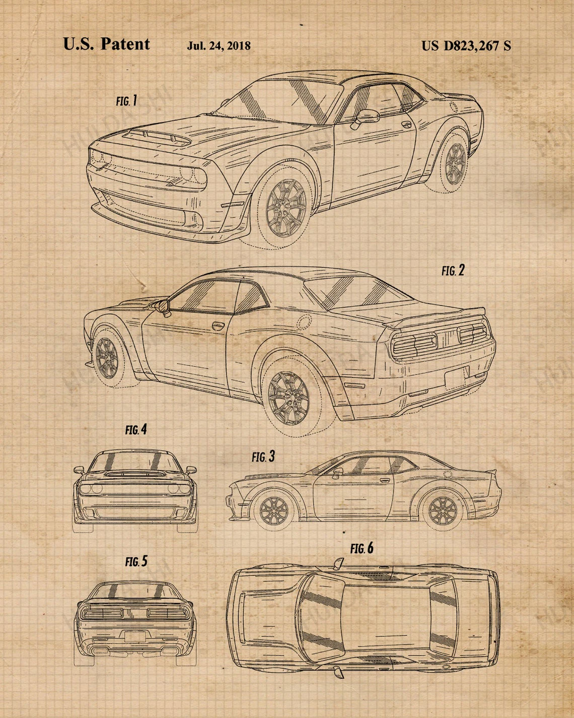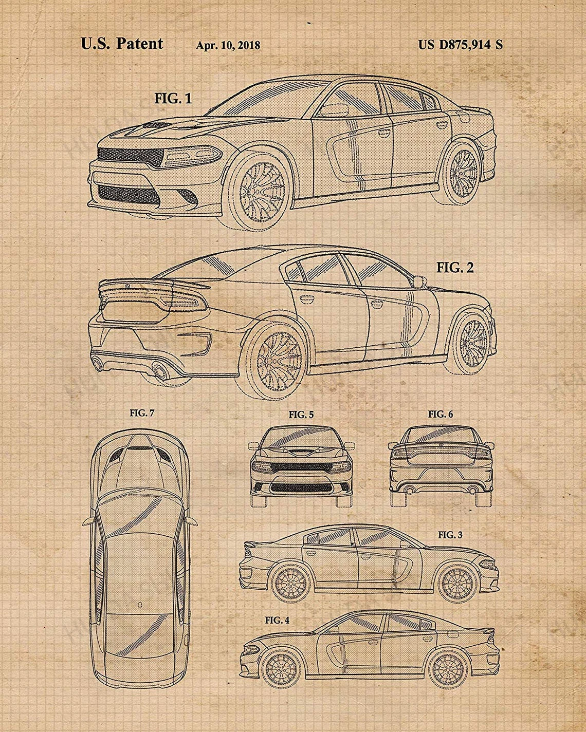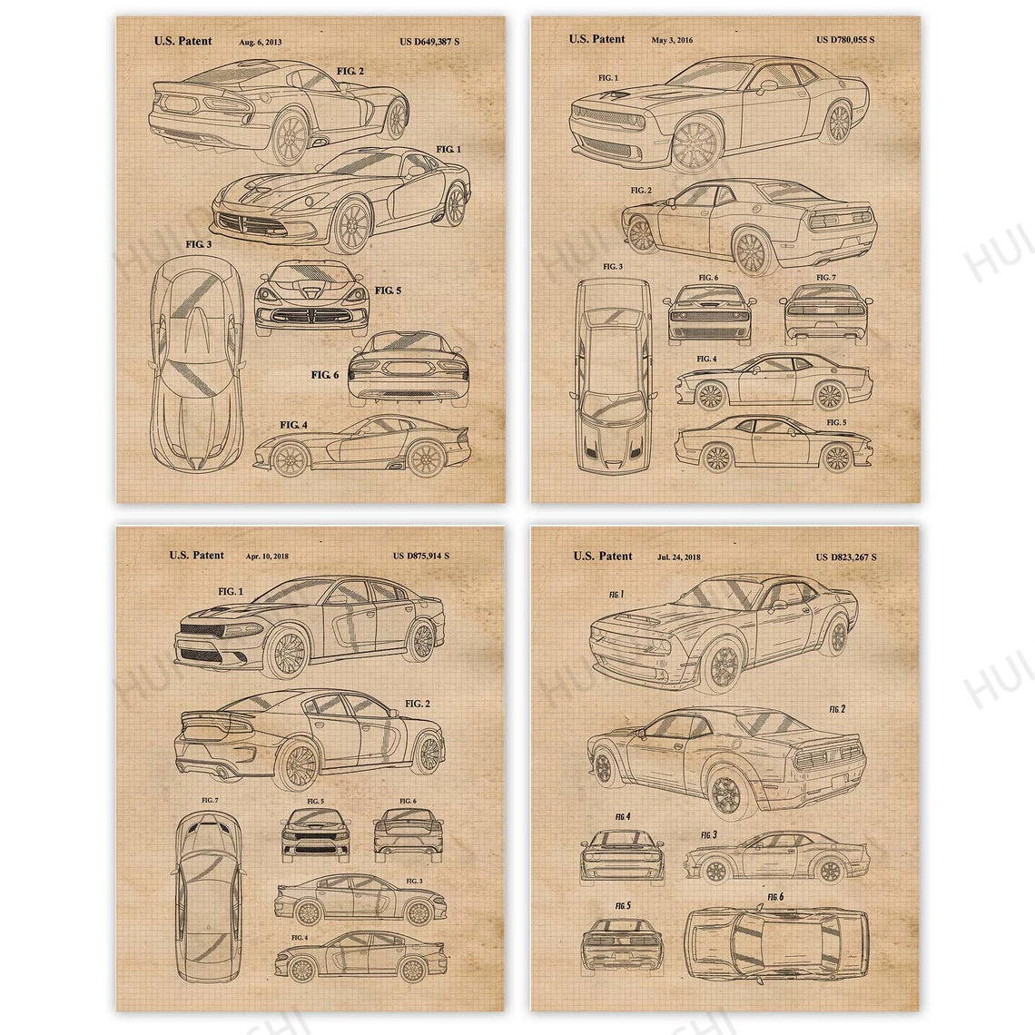 Винтажный Dodge Charger, Challenger, демон, Випер, патентный постер, принты, искусство, Декор, подарки для дома, офиса, мужская пещера, веер