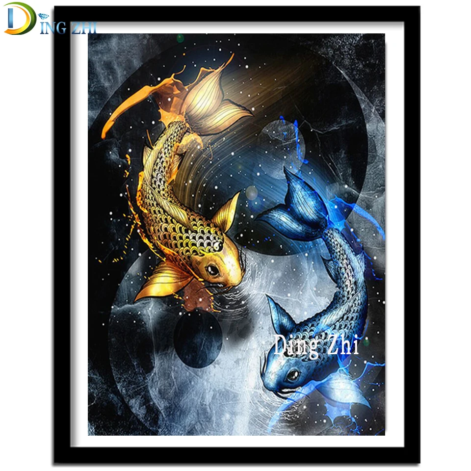 5D алмазная картина сплетни кои полный квадрат крестиком Бриллиантовая Вышивка Желтая синяя рыба круглая дрель домашний декор рукоделие