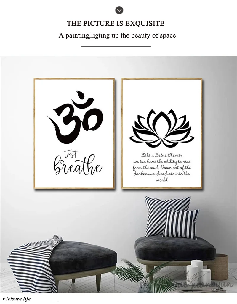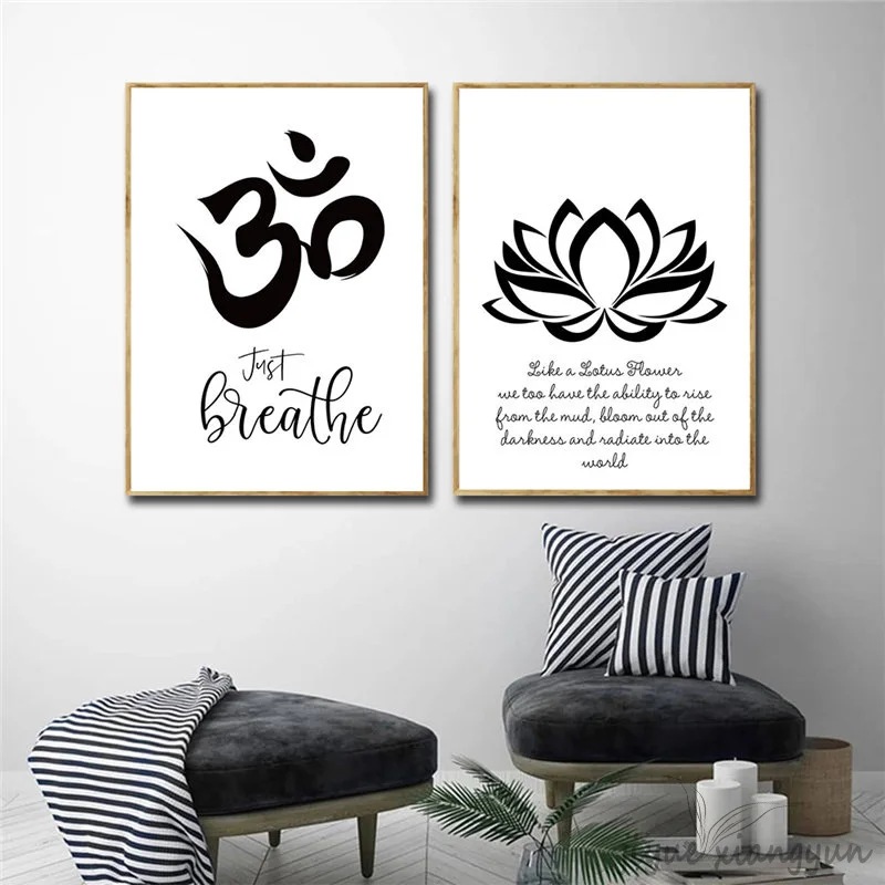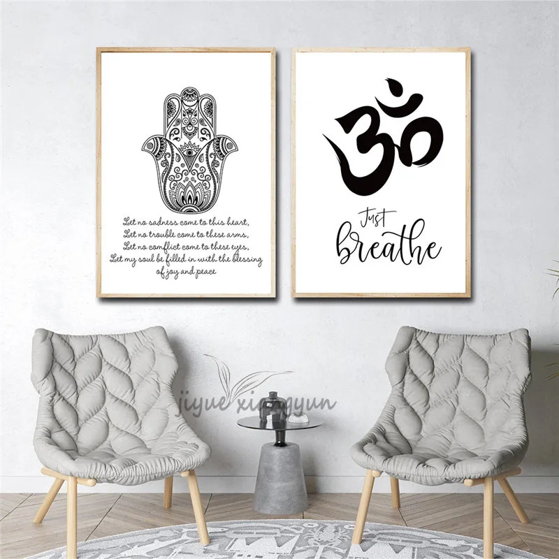 Абстрактный плакат душевная медитация, рука Хамаса, Лотос, черный, белый холст, печать, Йога, Настенная картина, картина, Современный домашний декор