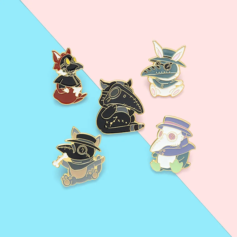 Чумной доктор серийная модная брошь в масках рисунками лисы, пингви...