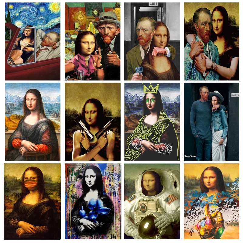 Картины на холсте с забавными персонажами Ван Гога и Мона Лиза, Абстрактные Художественные плакаты и принты для украшения дома, гостиной