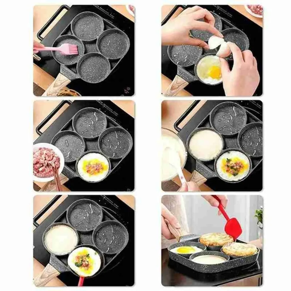 Сковорода утолщенная сковорода для омлета с четырьмя отверстиями, антипригарная, для яиц, блинов, стейков, приготовления яиц, ветчины, приготовления завтрака