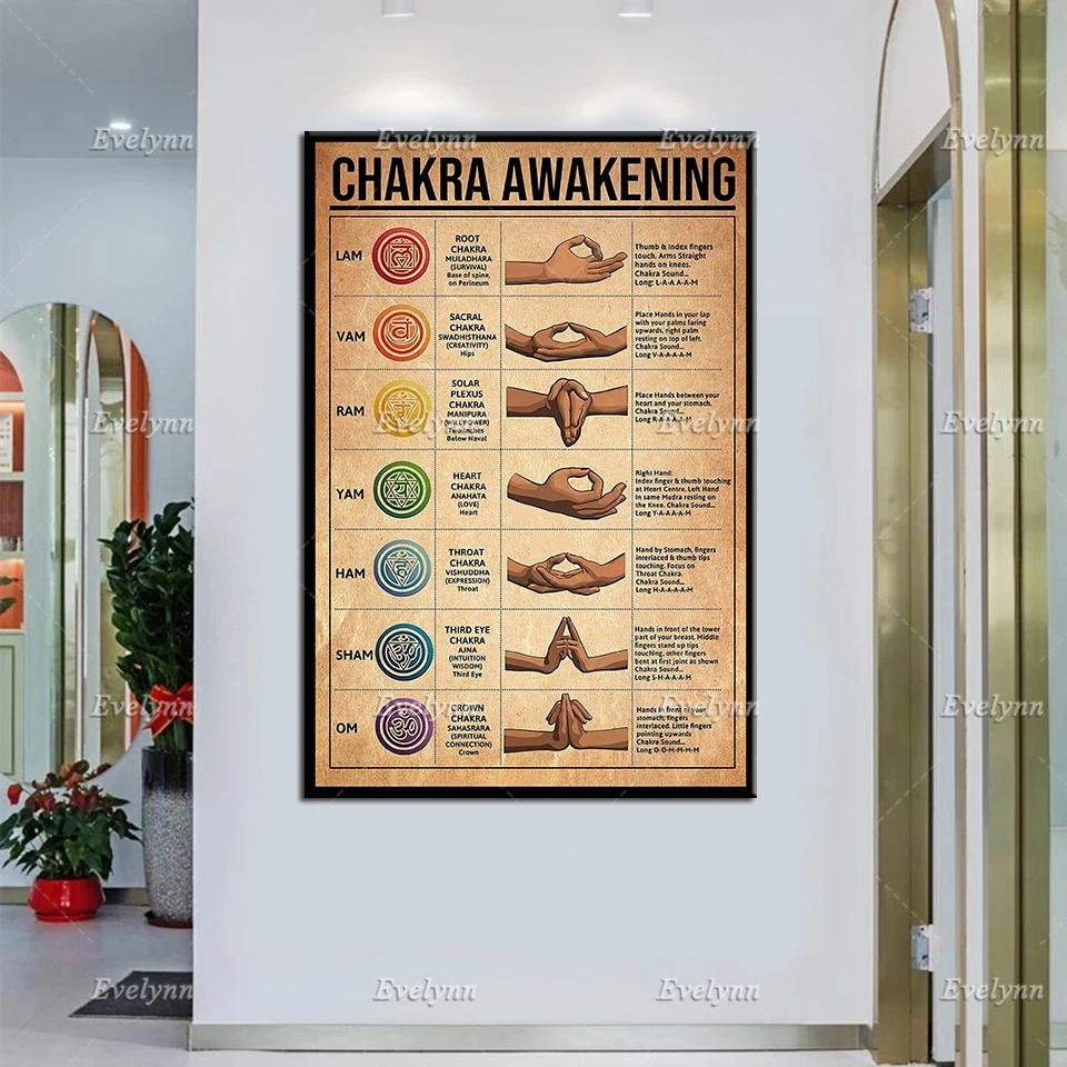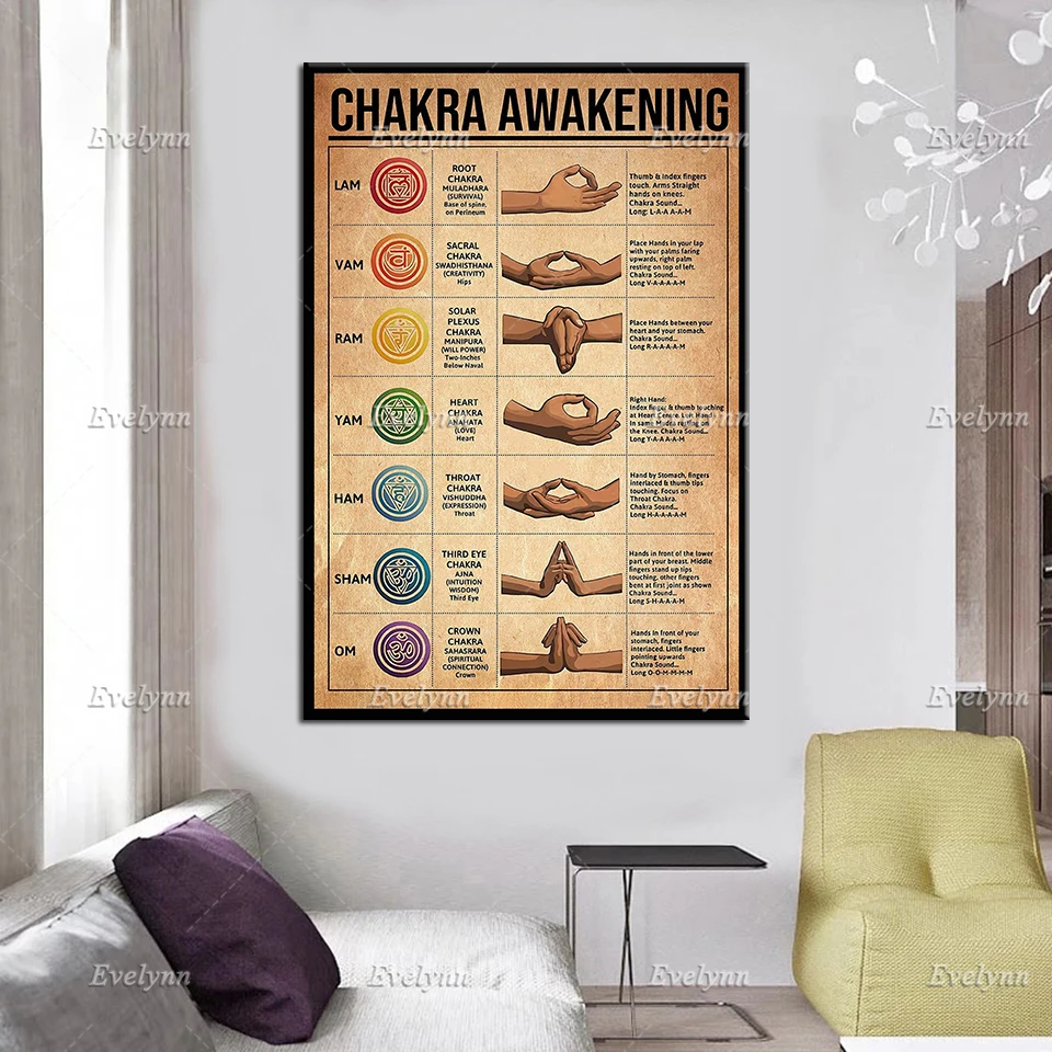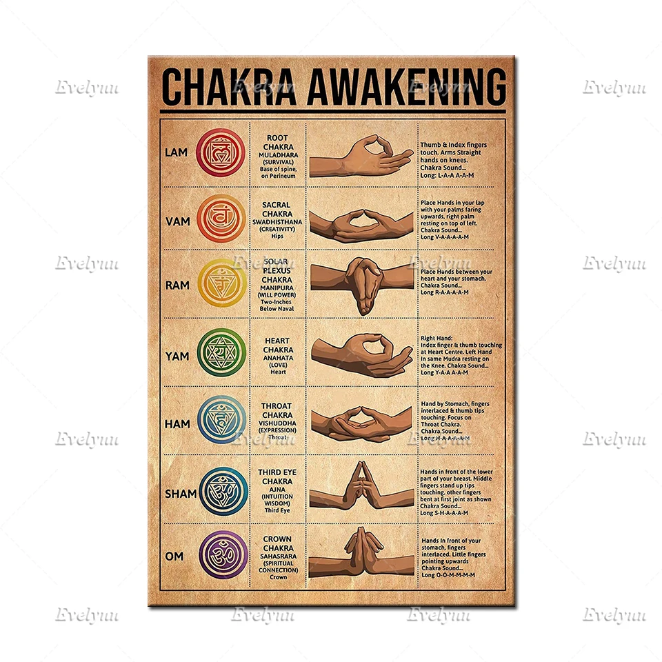 Йога, чакра, пробуждение чакры, ВИНТАЖНЫЙ ПЛАКАТ, плакат для любителей йоги, медитация, винтажные принты, чакра, домашний декор, настенный художественный холст