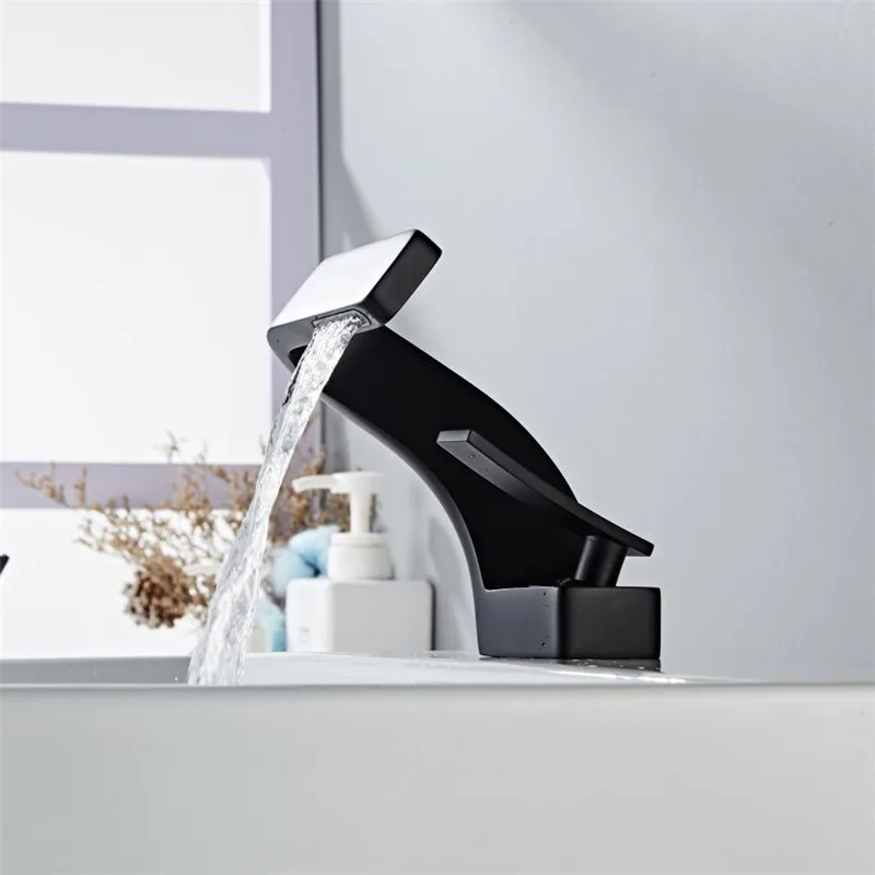 Смеситель для раковины Tuqiu, современный черный смеситель для ванн...