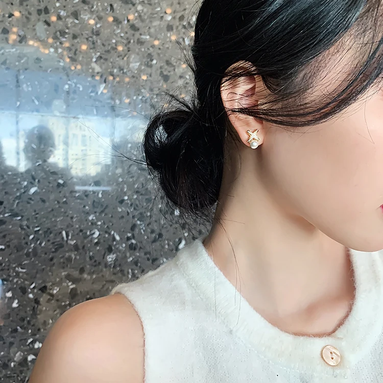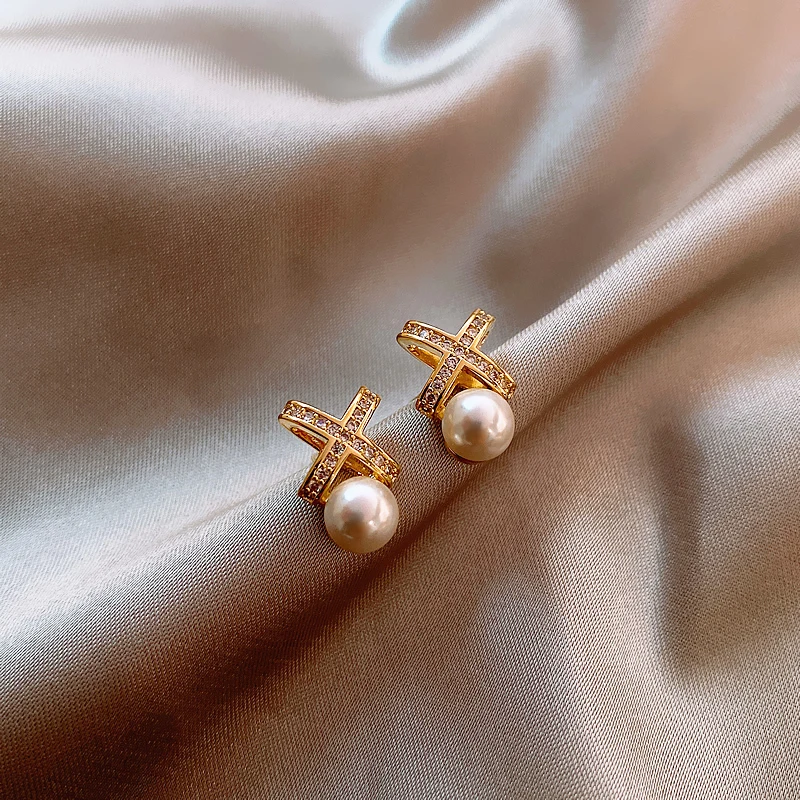 Серьги с жемчугом женские, классические металлические серьги с перекрестной буквой X в Корейском стиле, роскошные свадебные и вечерние ювелирные украшения для девушек, 2021
