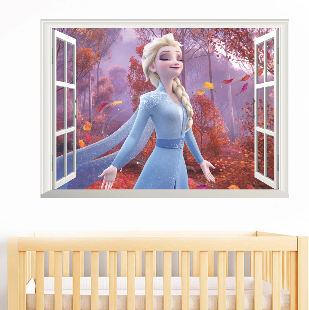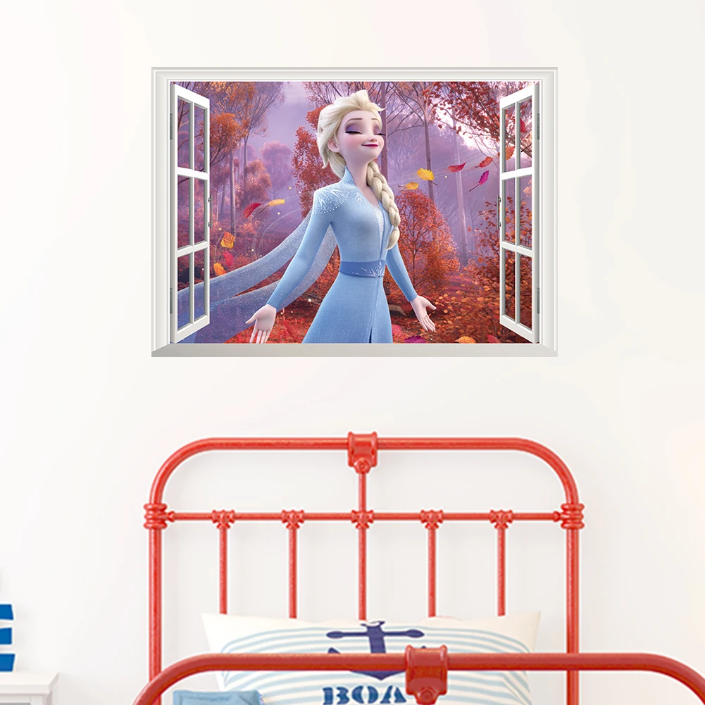 Мультяшные наклейки на стену сделай сам, холодная принцесса, Эльза, Анна, для девочек, детской комнаты, фоновое украшение, съемный постер для детской спальни, наклейка