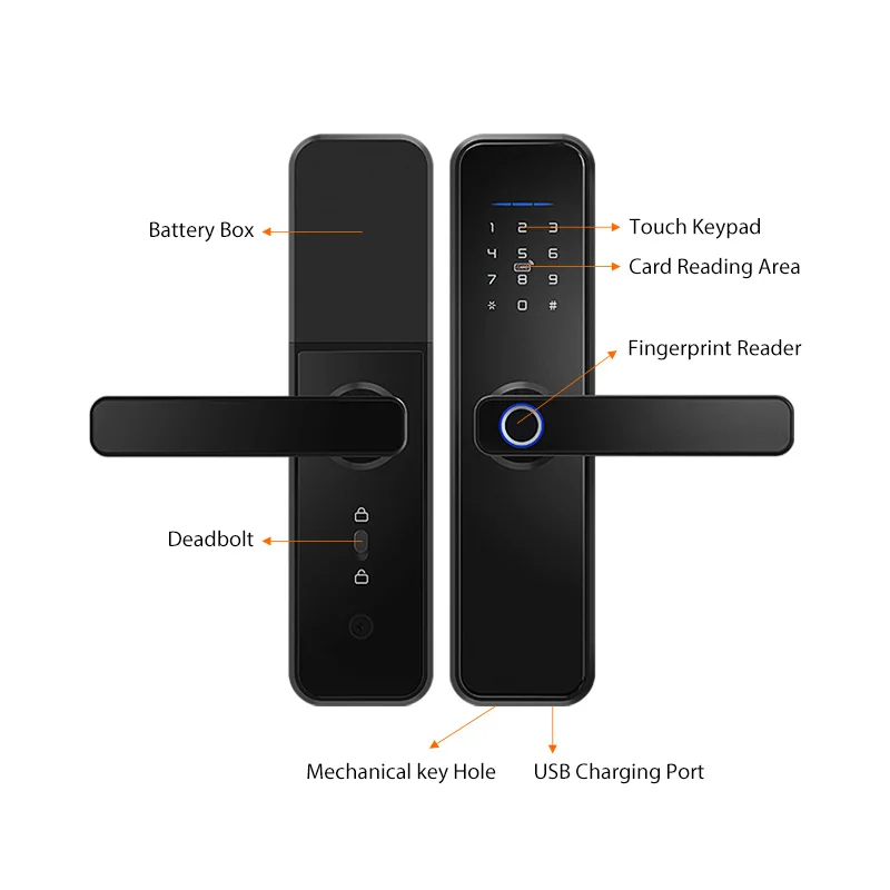 Мобильный смарт-замок Tuya с приложением, водонепроницаемый, со сканером отпечатков пальцев, Wi-Fi, клавиатура, RFID-карта, блокировка механическим ключом, замок для умного дома