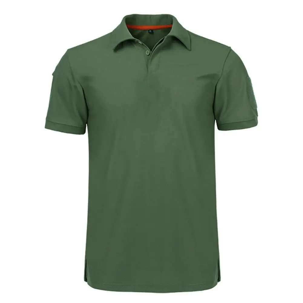 Футболка мужская быстросохнущая, однотонная, с отложным воротником, короткими рукавами, на пуговицах, в стиле милитари, для занятий спортом, походов, тренировок, тактическая, Мужская футболка одежда