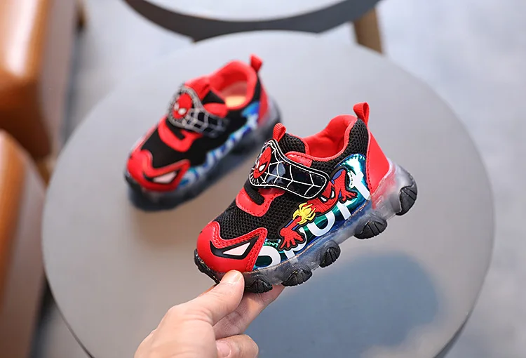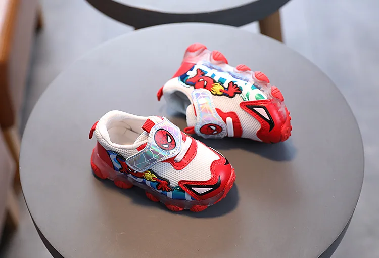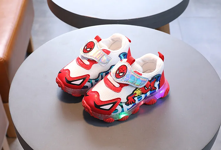 Кроссовки Детские со светодиодной подсветкой, со спайдерменом, размер 21-30