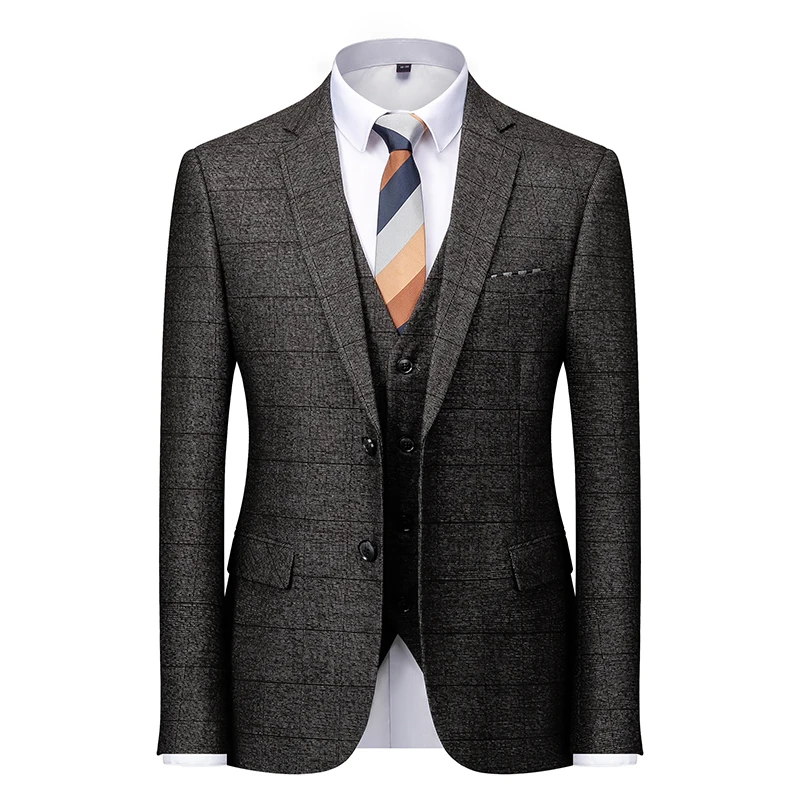 Мужской классический костюм-тройка, серого цвета, в клетку, Деловой, Повседневный, 2021