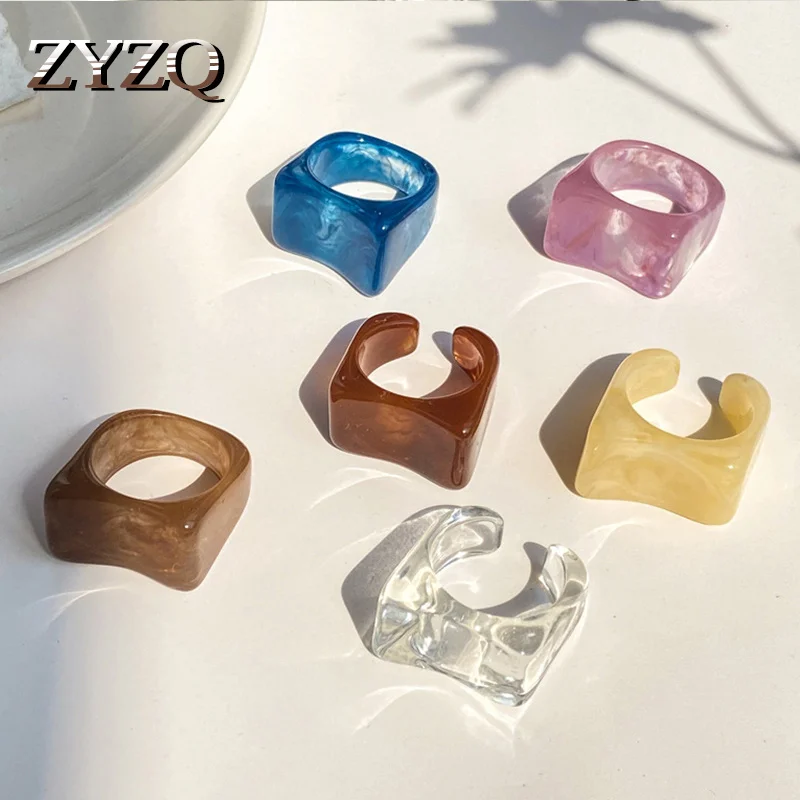 Кольцо ZYZQ с прозрачным акриловым покрытием женское, яркое геометрическое неправильное квадратное круглое Ювелирное Украшение для вечеринок