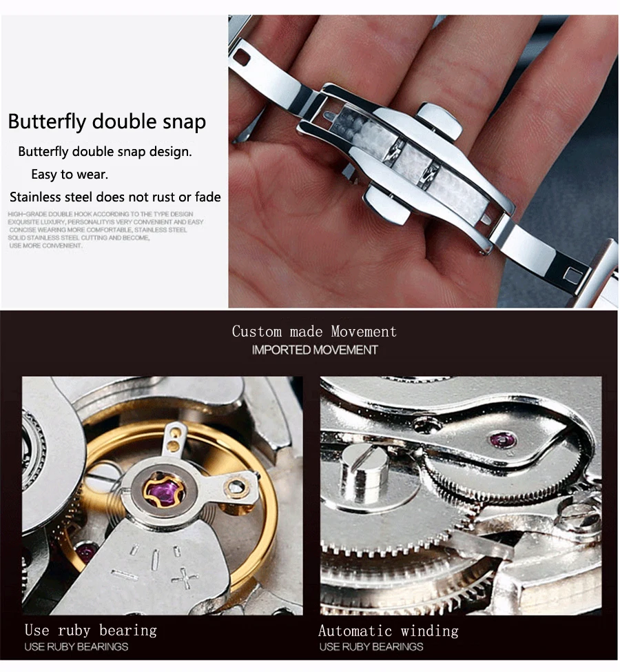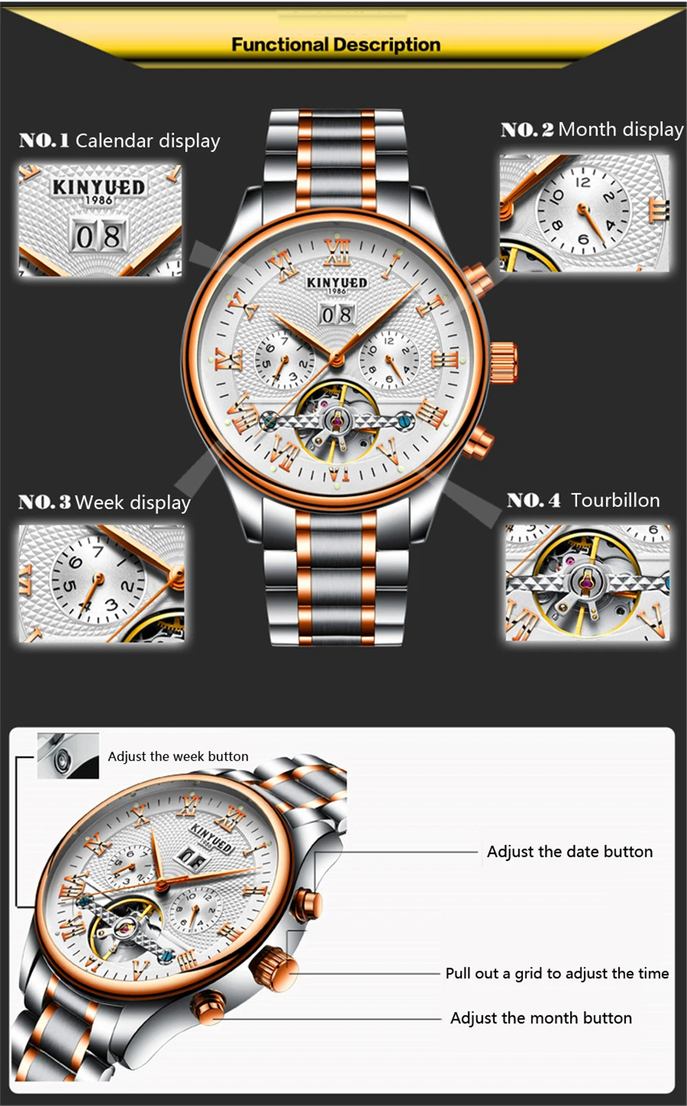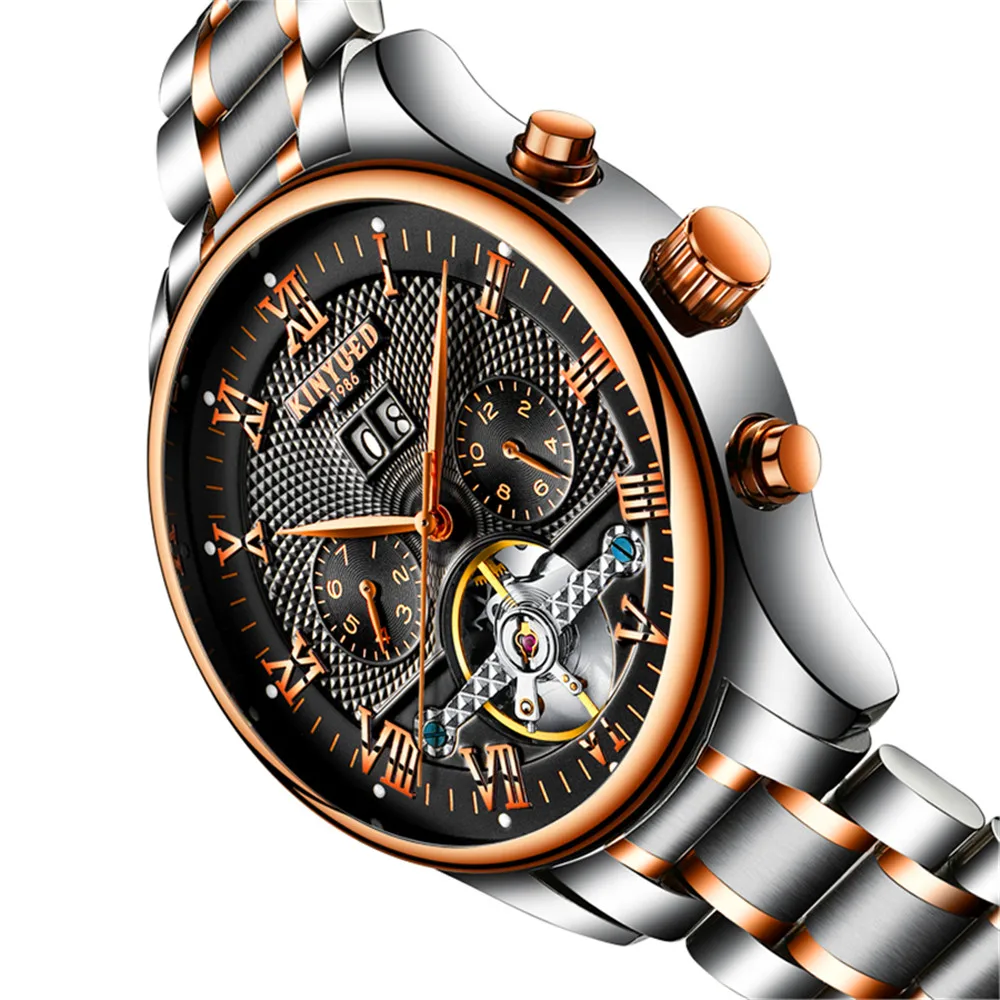 Новые модные многофункциональные мужские часы KINYUED из нержавеющей стали, автоматические механические спортивные водонепроницаемые часы, мужские часы J012