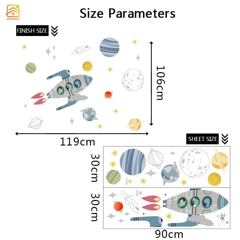 Tofok новые Мультяшные наклейки на стену ракета Вселенная планета м...