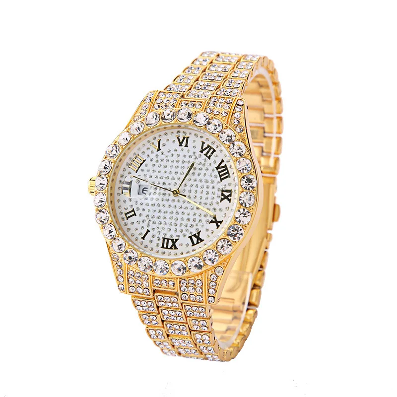 Часы в римском стиле, мужские часы со стальным ремешком, цельное небо, один календарь, Полный Бриллиант, женские мужские часы, кварцевые часы, высококачественные Стразы
