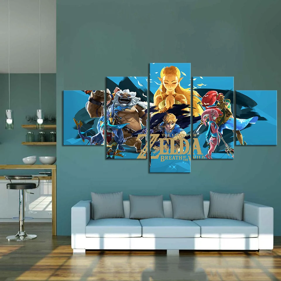 Холст без рамки 5 панелей Zelda Gamer аниме Куадрос настенные посте...